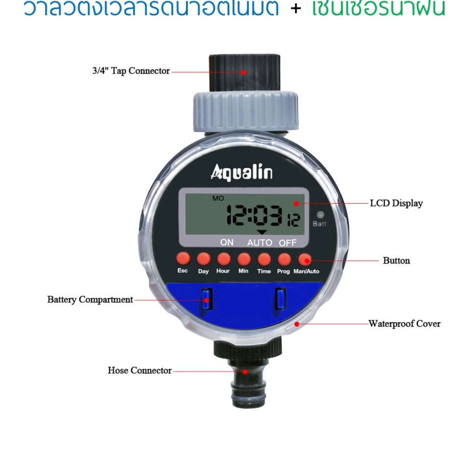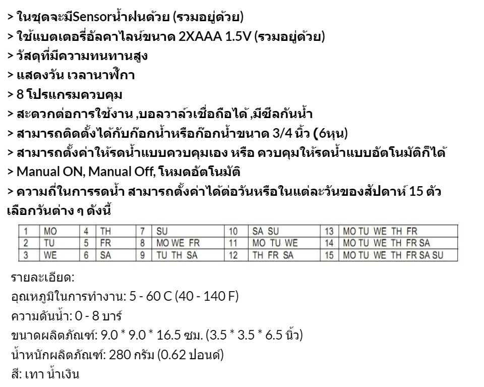 - มีโปรแกรมควบคุมการทำงานการรดน้ำ ทั้งหมด 16 โปรแกรม On/Off
