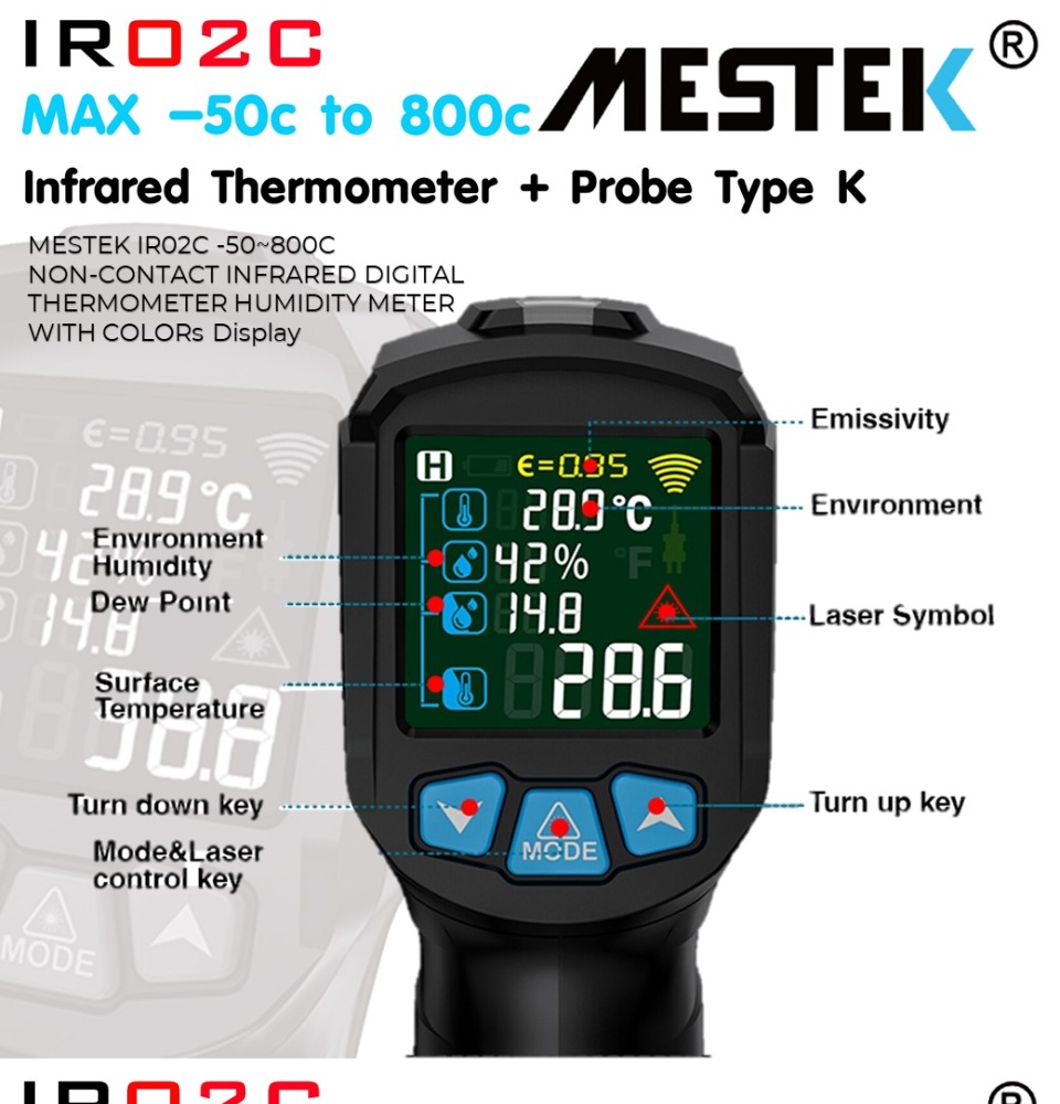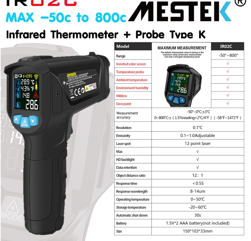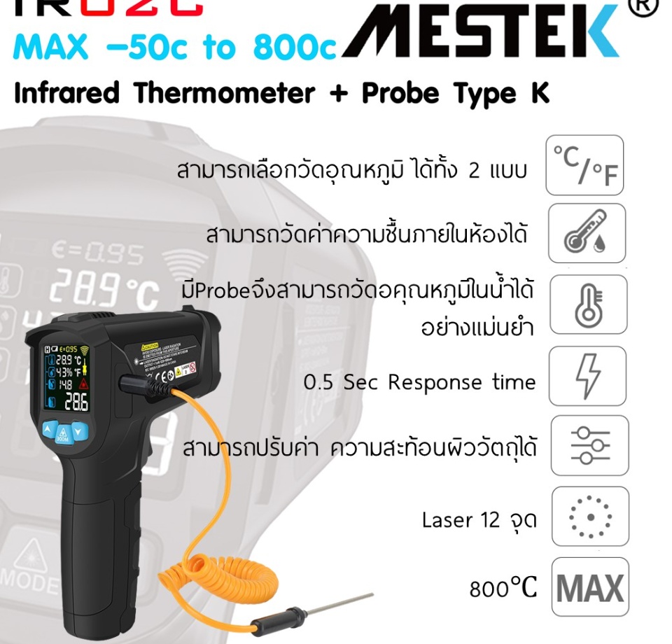 ช่วง temperuature การวัด : IR02C: -50 ~ 800 °C, อุณหภูมิ,